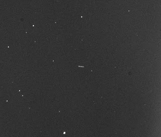 Qui a sinistra,029 Anphitrite,alle 00h20m UT del 17.10.2011al centro della foto.Asteriode apparentemente vicino a Ganymed. La sue traccia di spostamento in 15m in è un mosso appena percettibile.