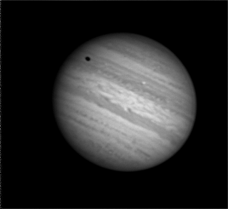 Immagine del 13 settembre, stesso setup come sopra. Transito di Io (visibile nei pressi del meridiano) e ombra in uscita. Seeing 4-5 di 10 trasp. sufficienti.